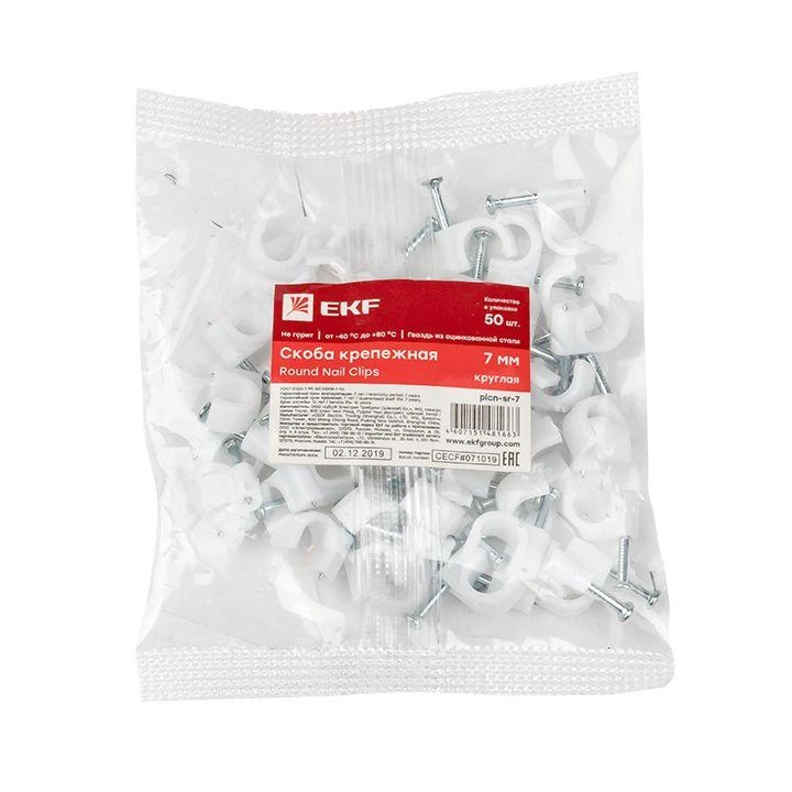 Скоба крепежная круглая с гвоздем d7мм пластик. (уп.50шт) EKF plcn-sr-7