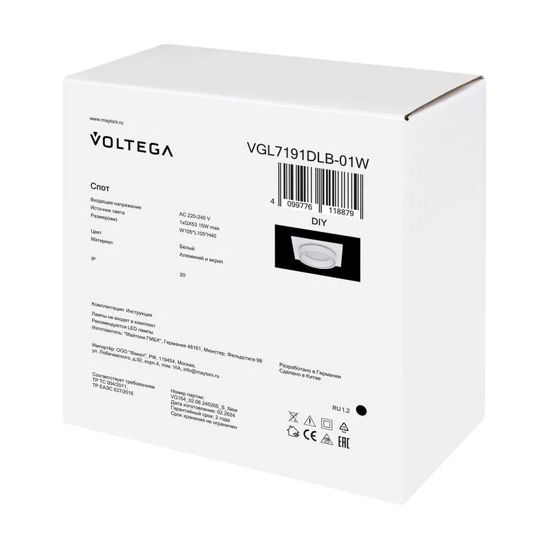 Спот Flip GX53х1 15Вт IP20 Voltega VGL7191DLB-01W