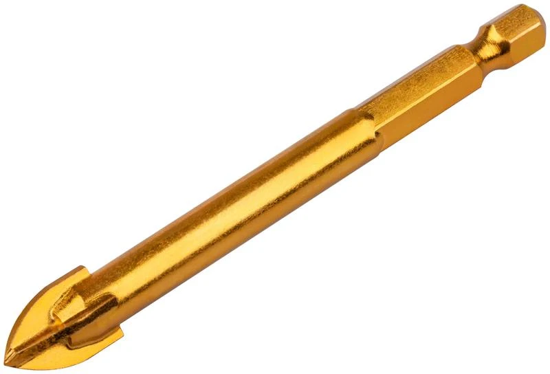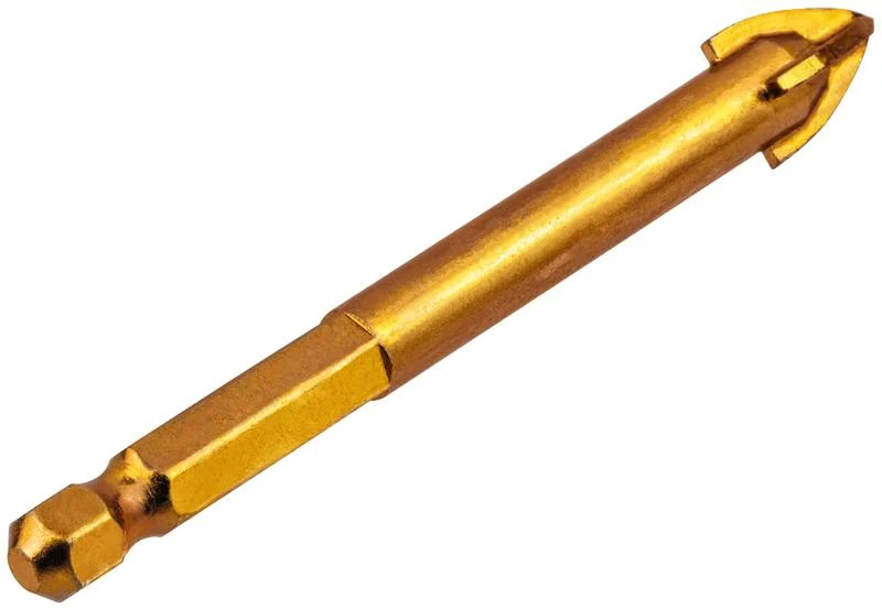 U-образный хвостовик под биту. Четыре режущие кромки. Для сверления отверстий в кафельной плитке. Повышенная производительность. Материал: инструментальная сталь с титановым покрытием, твердосплавные вставки. Упаковка: блистер.
