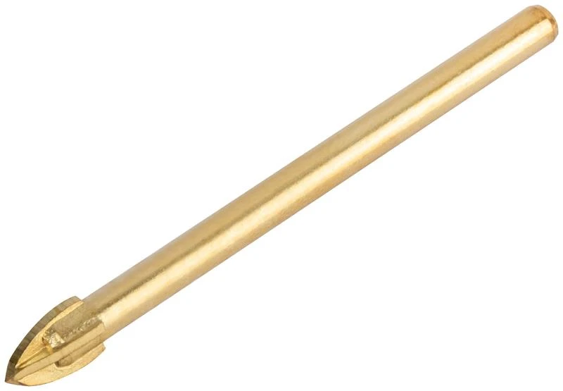 Четыре режущие кромки. Для сверления отверстий в стекле, кафельной плитке. Повышенная производительность. Материал: инструментальная сталь с титановым покрытием, твердосплавные вставки. Упаковка: блистер.