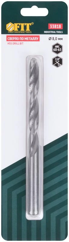Сверло по металлу HSS 8.0мм полированное (блист.) FIT 33818