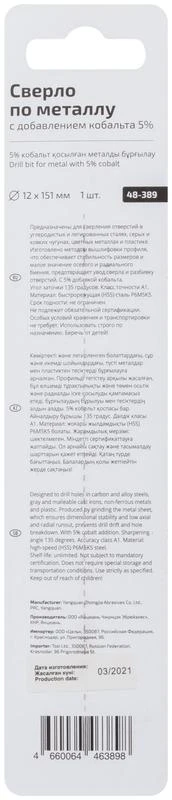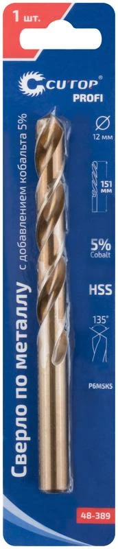 Сверло по металлу Profi 12х151мм с кобальтом 5проц. Cutop 48-389