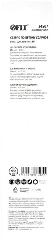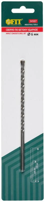 Сверло победитовое ударное трехгранный хвостовик (для бетона кирпича) 6х150мм FIT 34507