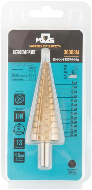 Сверло ступенчатое HSS по металлу 13 ступеней 6-30мм MOS 36383М
