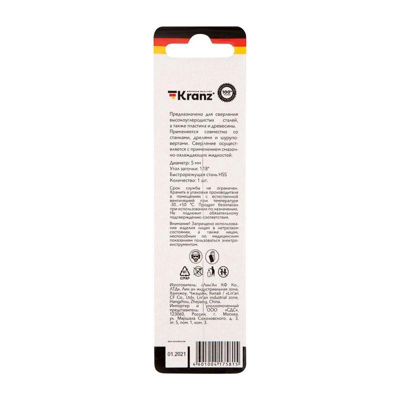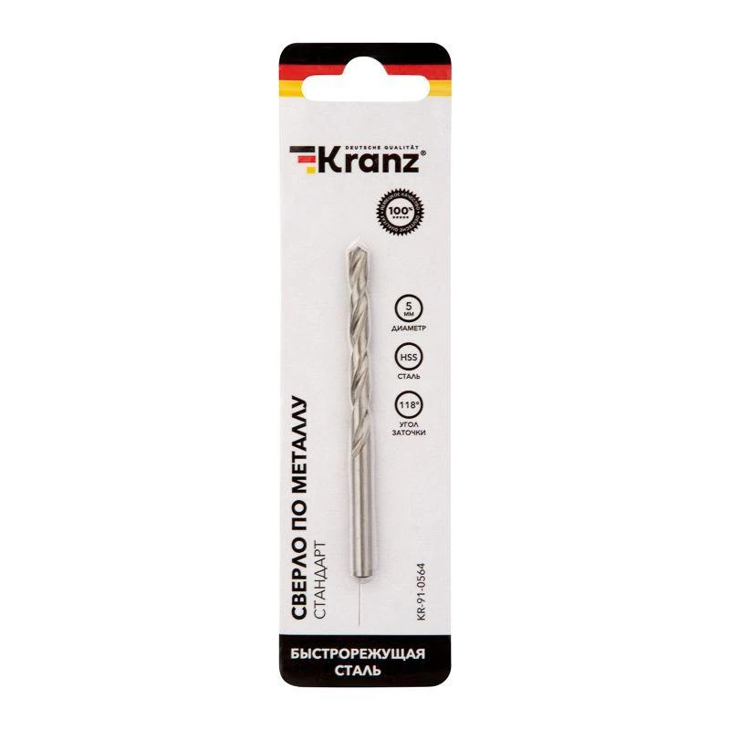 Сверло по металлу 5.0мм HSS DIN 338 (уп.1шт) Kranz KR-91-0564