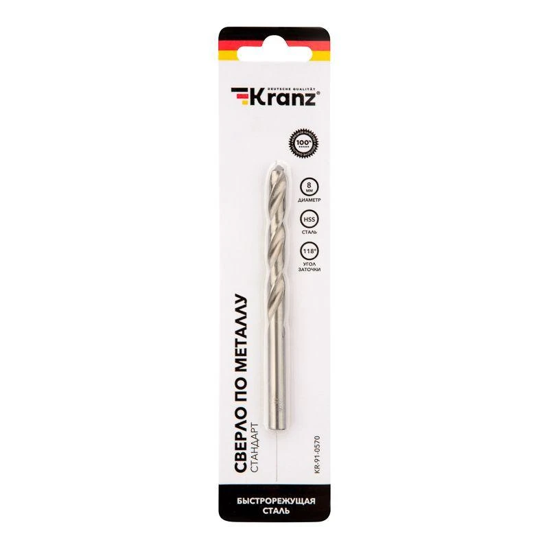 Сверло по металлу 8.0мм HSS DIN 338 (уп.1шт) Kranz KR-91-0570