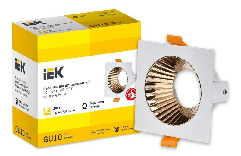 Светильник 4109 встраиваемый поворотный GU10 бел./золото пласт. IEK LT-UVB0-4109-GU10-1-K22