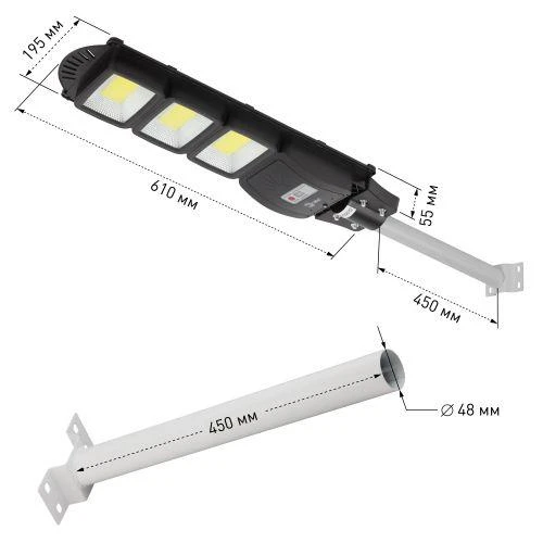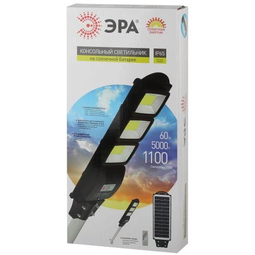 Светильник 60Вт 5000К IP65 1100лм консольный на солнечной батарее COB с кронштейном с датчиком движения ПДУ Эра Б0046796