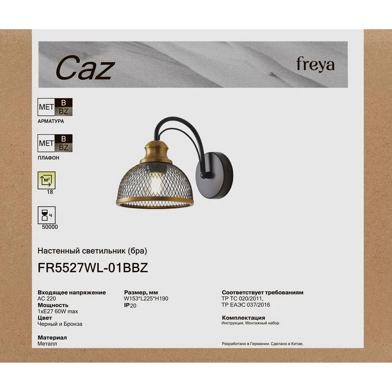 Светильник Caz 1х60Вт E27 IP20 бра настен. Freya FR5527WL-01BBZ