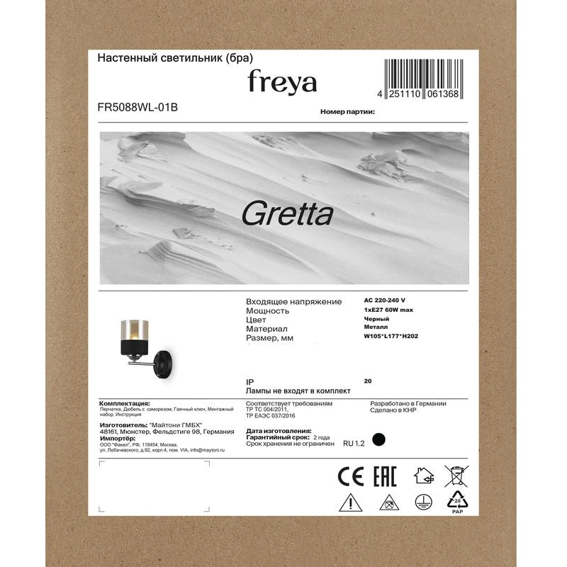 Светильник настенный (бра) Gretta Е27х1 60Вт IP20 Freya FR5088WL-01B — это стильное и компактное решение для создания уютной атмосферы в вашем интерьере. Благодаря своему дизайну бра станет гармоничным дополнением к любому стилю помещения. Настенный светильник Freya FR5088WL-01B отличается своей универсальностью и подойдёт для использования в различных помещениях — от спальни до гостиной. Его лаконичный дизайн и простота установки делают его удобным решением для создания комфортного освещения и добавления эстетики в ваш дом.