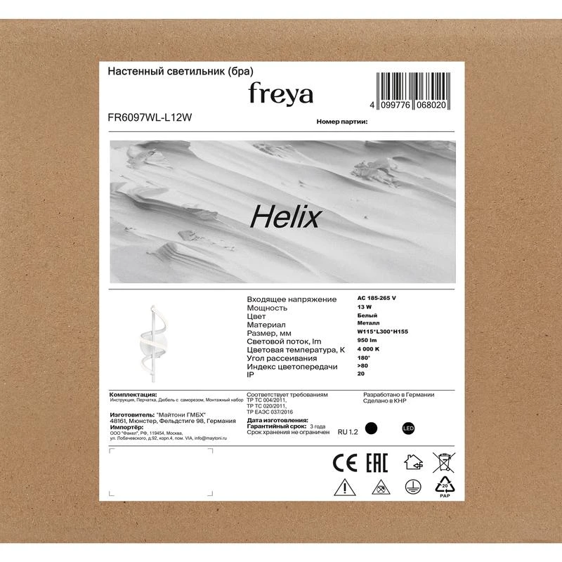 Светильник настенный (бра) Helix 13Вт IP20 Freya FR6097WL-L12W — компактное и стильное бра, которое добавит уюта и тепла в интерьер. Благодаря своей мощности и дизайну, оно идеально подходит для создания комфортной атмосферы в спальне или гостиной.