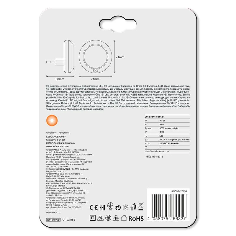 Светильник LUNETTA Round 0.3Вт 3000К 3лм 220-240В IP20 с сенсором бел. LEDVANCE 4058075266827