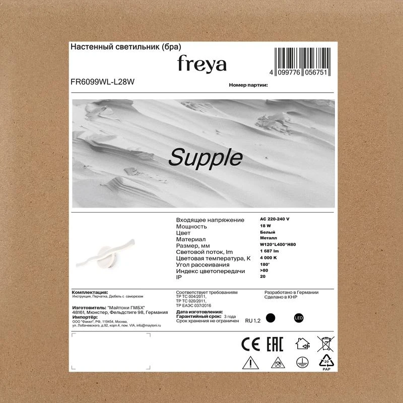 Светильник настенный (бра) Supple 18Вт IP20 Freya FR6099WL-L28W — ещё одна модель настенного бра из серии Supple, которая предлагает мягкий и приятный свет. Благодаря своему дизайну и мощности, бра идеально подходит для создания комфортной атмосферы в небольших помещениях.