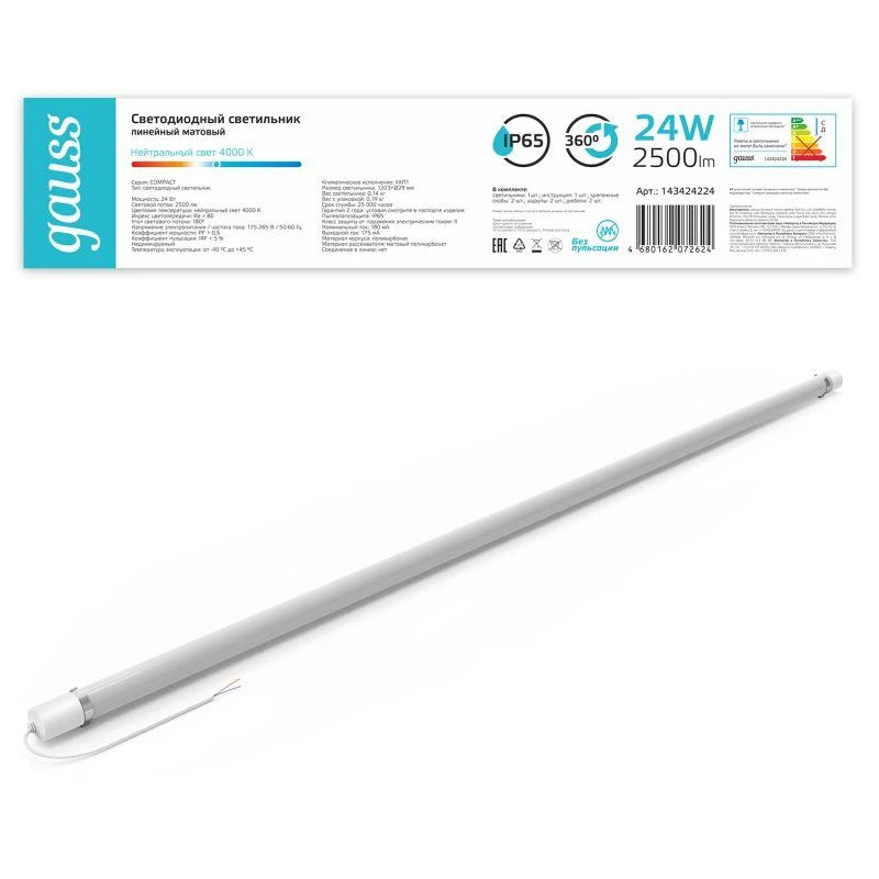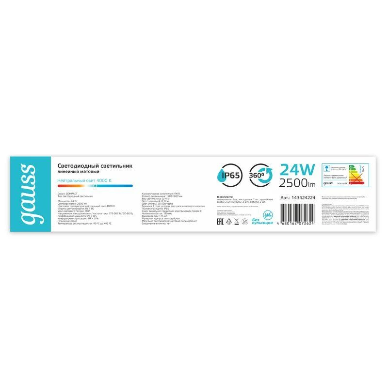 Светильник светодиодный 1203х29х29мм 24Вт 4000К 2500лм IP65 COMPACT линейный матов. GAUSS 143424224