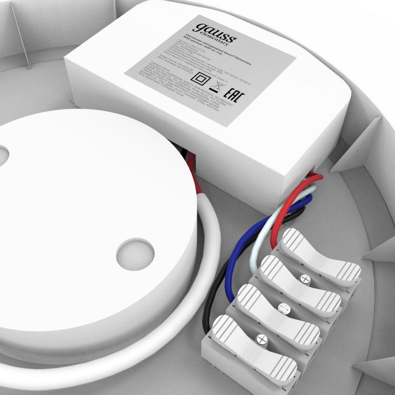 Светильник светодиодный Elementary 12Вт 4000К IP54 1080лм d205х65мм ДБП круг настенно-потолочный с БАП GAUSS 126411212A