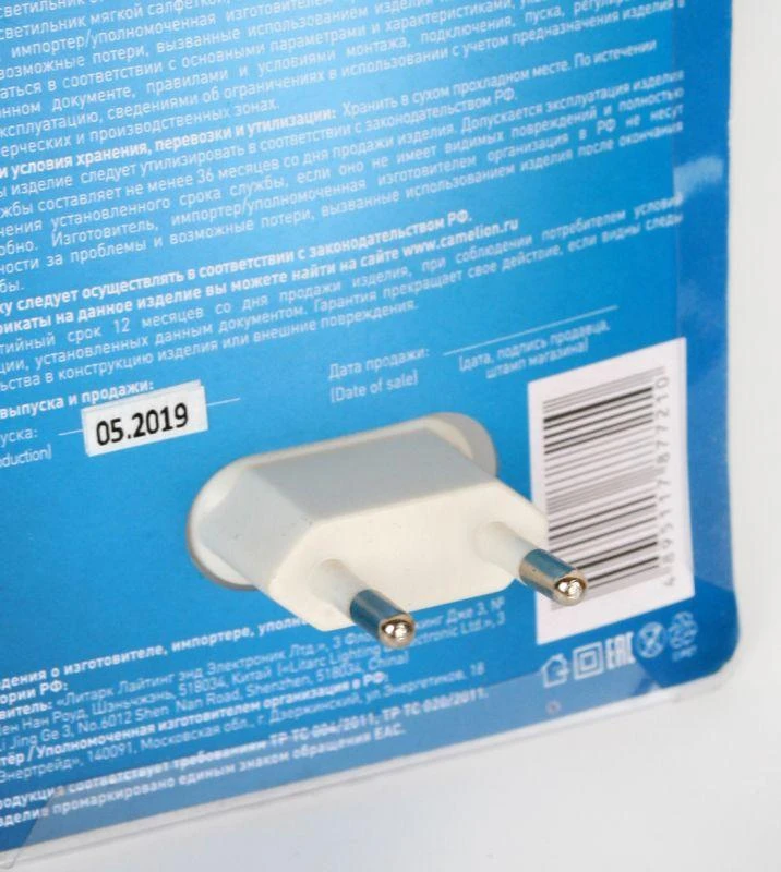 Светильник светодиодный NL-174 "Лампа" 220В ночник с выкл. бел. Camelion 12530