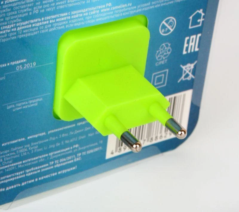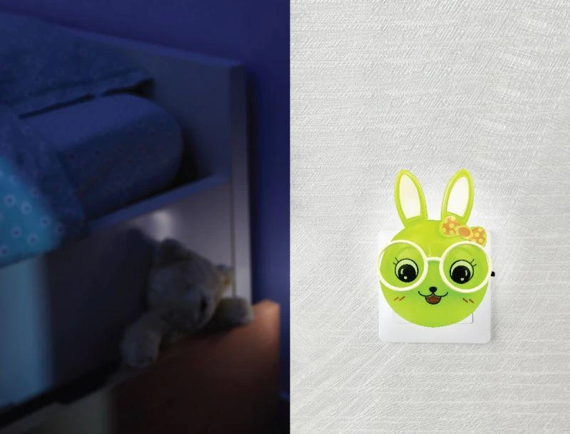 Светильник светодиодный NL-241 "Зайцы очкарики" 220В ночник с выкл. зел. Camelion 13816