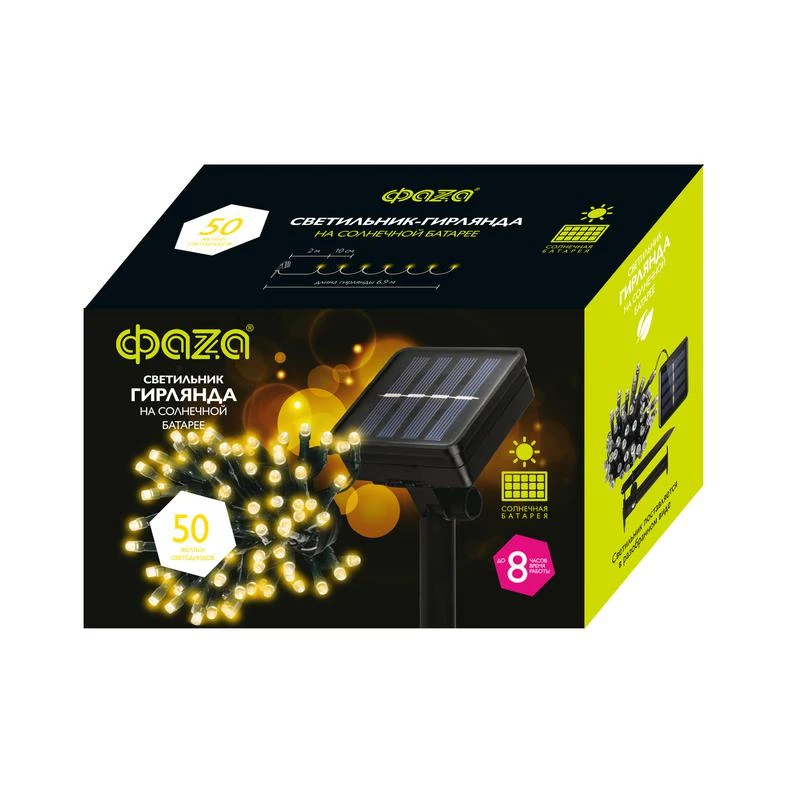Светильник светодиодный садовый SLR-G01- 50Y гирлянда 50 желт. LED на солнечн. батарее ФАZА 5027299