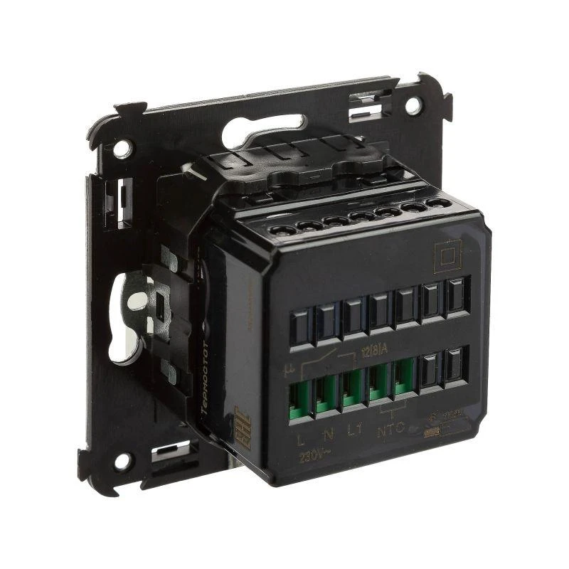 Термостат для теплых полов. Назначение: для монтажа в подрозеточные коробки глубиной не менее 45 мм (код 59301);. Предназначен для управления теплыми полами. Характеристики: диапазон от 5 до 30 °С; частота – 50–60 Гц; номинальное напряжение – 230 В; лампа-индикатор включается, когда температура в комнате падает ниже выбранного значения; нагрузка: 5 A – cos?=1, 2 A – cos?=0,4; фиксация в подрозеточные коробки глубиной не менее 45 мм при помощи каркаса с лапками (код 4400802) и саморезов; провод датчика температуры в комплекте (длина 3,5 метра). Цвет: "Белое облако".