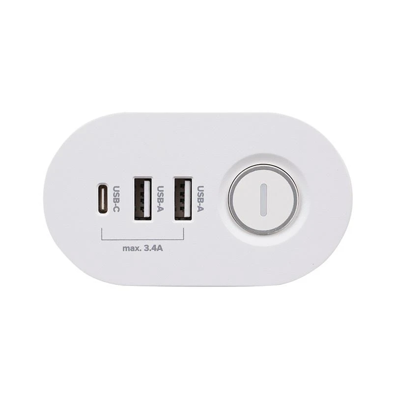 Удлинитель 3х1.5м на струбцине с заземл. с выкл. 3 USB выхода (2А+1С) IP20 ПВС 3х1 ETD-03U-150-wh (3х1.5) бел. JAZZway 5059535