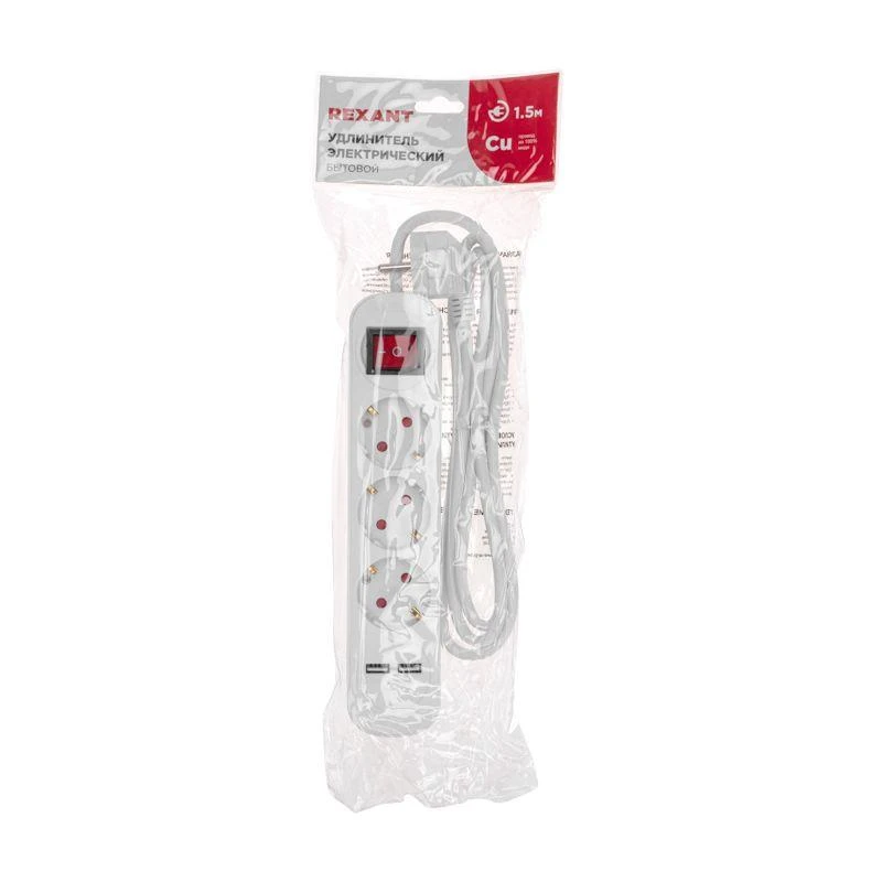Удлинитель 3х1.5м с заземл. STANDARD 2хUSB 3х1кв.мм с выкл. бел. Rexant 13-4015