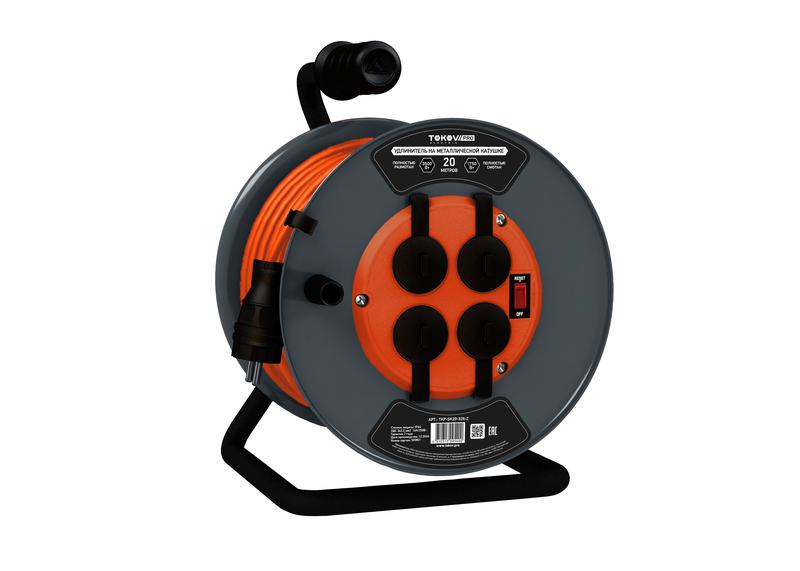 Удлинитель на метал. катушке 4х20м с заземл.16А IP44 ПВС 3х2.5 с выкл. медь TOKOV ELECTRIC TKP-SK20-325-Z