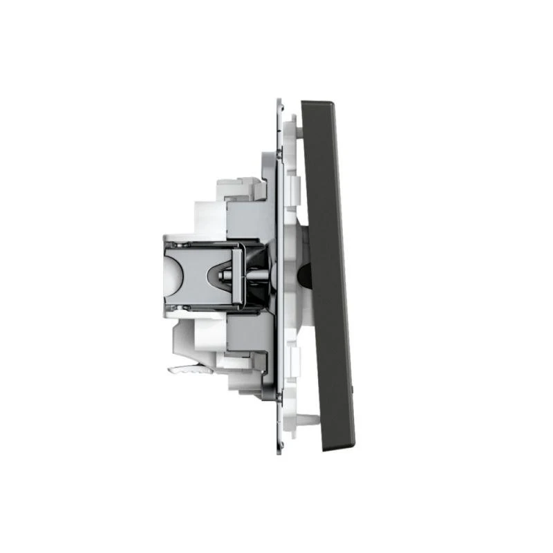 Механизм с быстрозажимными клеммами Systeme Electric серии ArtGallery в цвете базальт выключателя 1-клавишного с подсветкой подходит для сетей 250 В, на ток 10 А. С помощью новых быстрозажимных клемм монтаж стал быстрее. Для подключения не требуется отвертка. Решение для ценителей матовых поверхностей в интерьере, к которым приятно прикоснуться. Лицевые детали из качественного ABS-пластика, устойчивого к царапинам и УФ-излучению. Лучший промышленный дизайн (по итогам премии МИНПРОМТОРГ 2023).