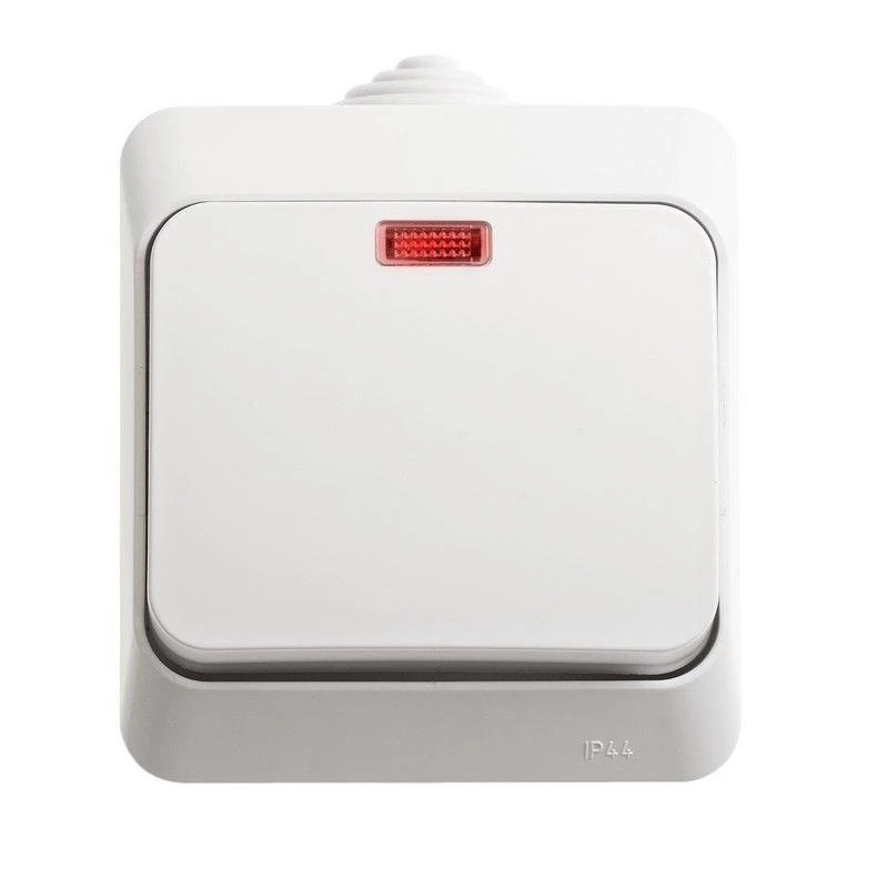 Выключатель Systeme Electric (ранее Schneider Electric) ЭТЮД (белый, открытой установки) одноклавишный, с подсветкой и предназначен для применения в сетях до 250В, на ток до 10А, что делает его легко находимым при отсутствии освещения. Он удобен в применении и отлично подходит для ванной комнаты (IP44). Сделано в России.