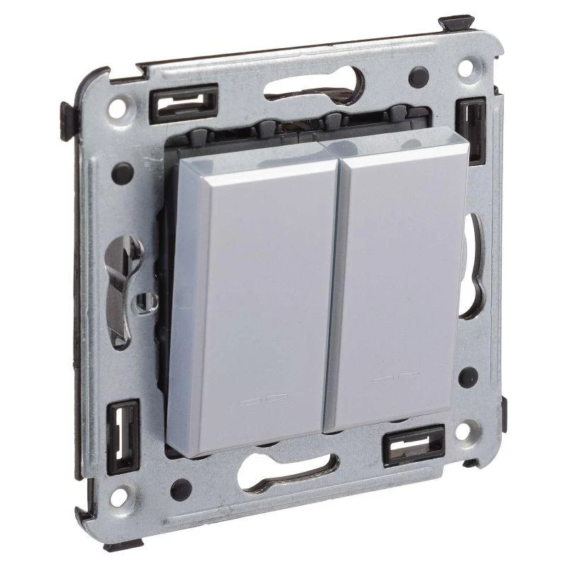 Выключатель 2-кл. 2мод. СП Avanti "Закаленная сталь" 16А сер. DKC 4404104