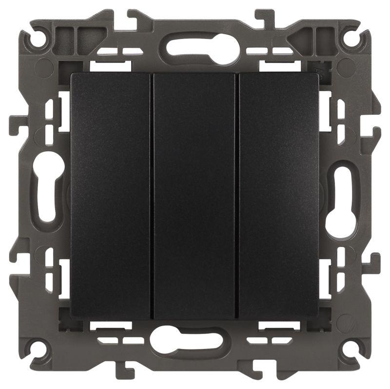 Выключатель 3-клавишный Эра Elegance антрацит 14-1107-05. Рамки приобретаются отдельно.