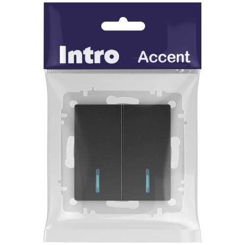 Выключатель 2-кл. СП Accent 6-105-05 10А IP20 250В с подсветкой AL/CU антрацит Intro Б0063516
