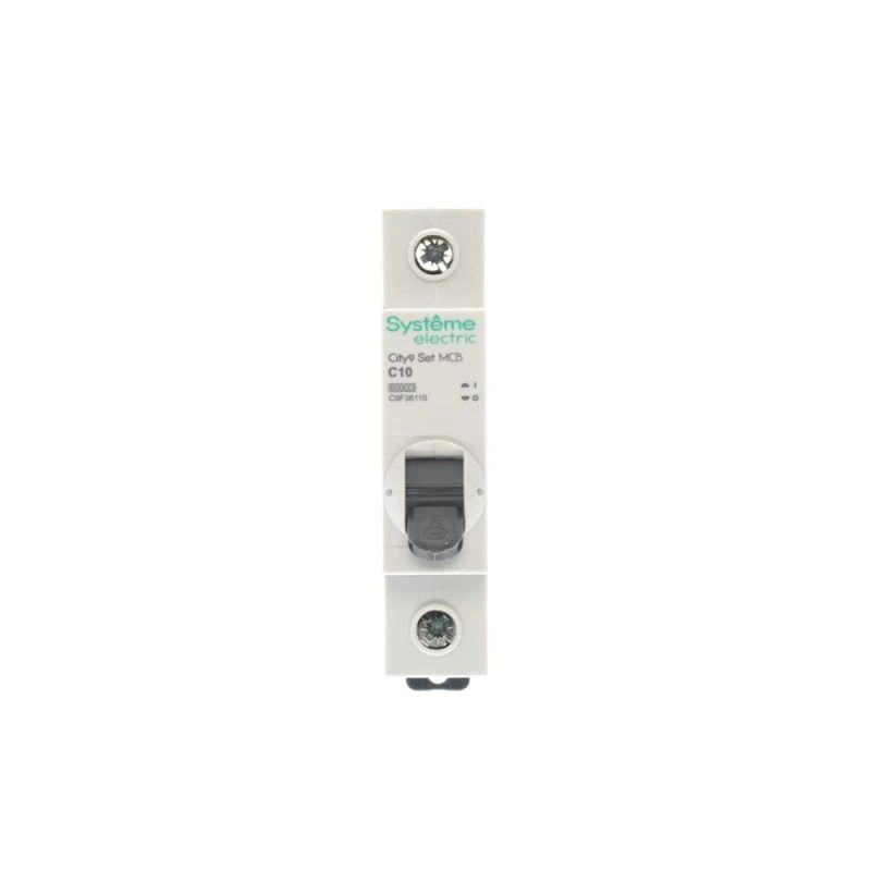 Автоматический выключатель серии City9 Set Systeme Electric, 1-полюсный, номинальный ток 10 А, характеристика С, Icn = 6 кА. Применяется в электрических сетях напряжением 230 В. Предназначен для защиты от перегрузок и токов короткого замыкания. Оснащен механизмом «мгновенной коммутации». Ударопрочный корпус из специального пластика с 6 металлическими заклепками. Безопасные клеммы исключают попадание кабелей в заклеммное пространство.
