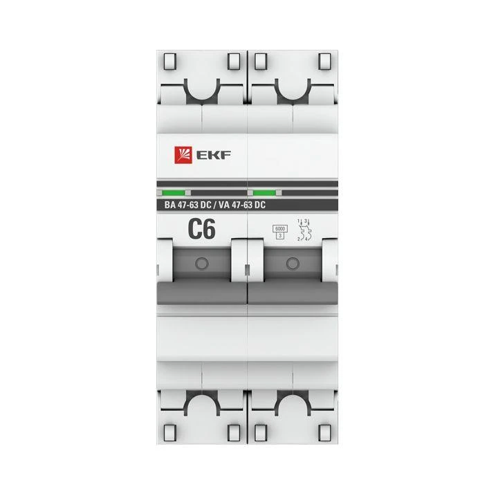 Выключатель автоматический модульный 2п C 6А 6кА ВА 47-63 DC PROxima EKF mcb4763-DC-2-06C-pro