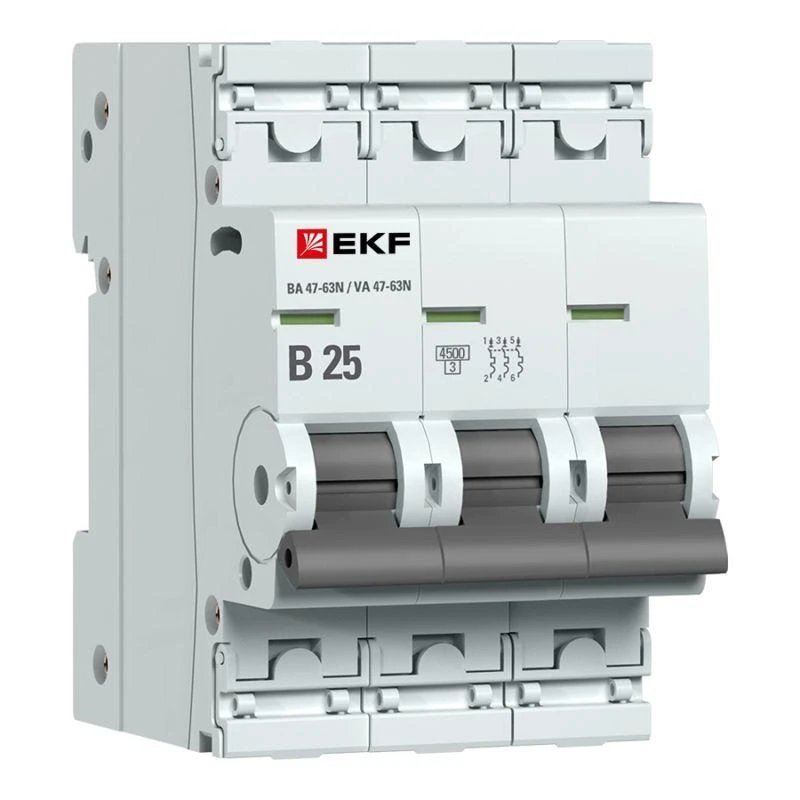 Выключатель автоматический модульный 3п B 25А 4.5кА ВА 47-63N PROxima EKF M634325B