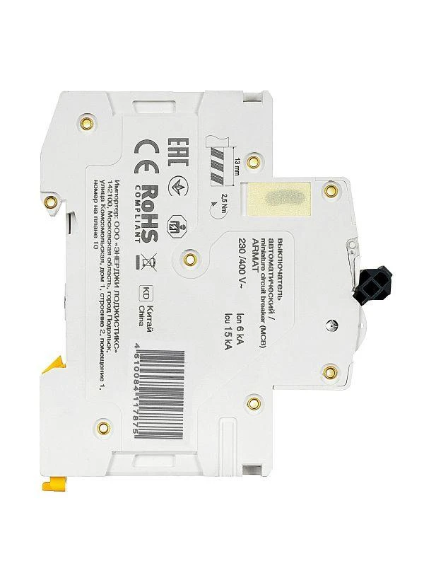 Автоматические выключатели ARMAT серии M10N предназначены для защиты цепей от перегрузки и короткого замыкания. Модельный ряд включает в себя устройства с характеристиками срабатывания B, C, D и номинальными токами от 0,5 до 63 А. Номинальная отключающая способность автоматических выключателей ARMAT серии M10N составляет 10 кА. Предельная отключающая способность варьируется в зависимости от номинала от 10 до 50 кА.