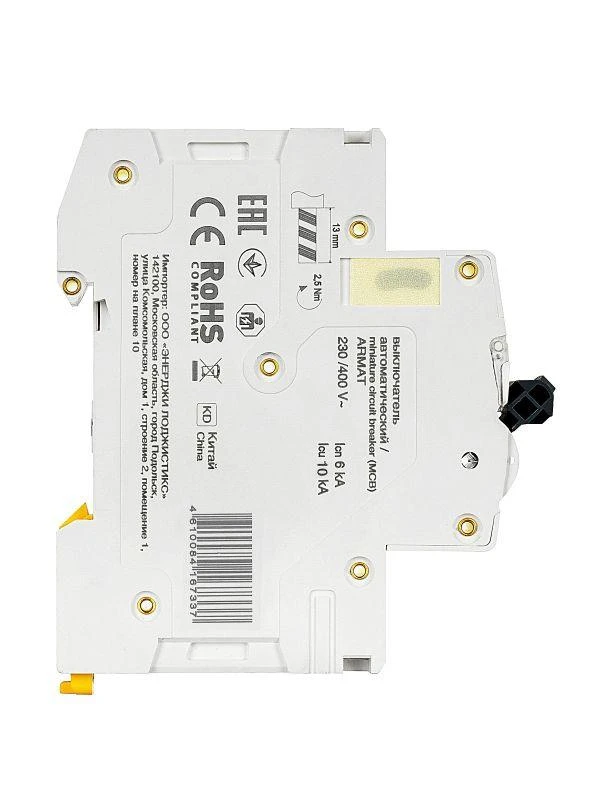 Автоматические выключатели ARMAT серии M10N предназначены для защиты цепей от перегрузки и короткого замыкания. Модельный ряд включает в себя устройства с характеристиками срабатывания B, C, D и номинальными токами от 0,5 до 63 А. Номинальная отключающая способность автоматических выключателей ARMAT серии M10N составляет 10 кА. Предельная отключающая способность варьируется в зависимости от номинала от 10 до 50 кА.