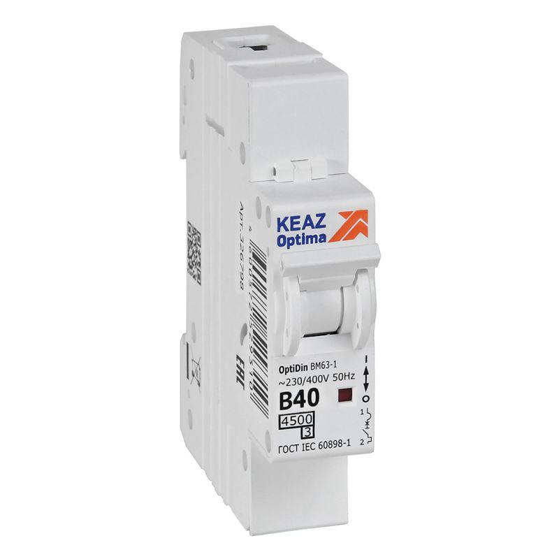 Выключатель автоматический модульный 1п B 40А 4.5кА OptiDin BM63-1B40-4.5-УХЛ3 КЭАЗ 329505