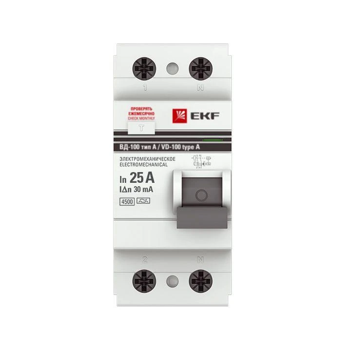 Выключатель дифференциального тока (УЗО) 2п 25А 30мА тип A ВД-100 (электромех.) PROxima EKF elcb-2-25-30-em-a-pro
