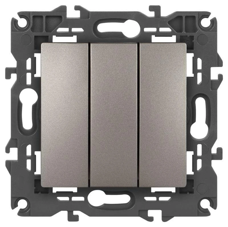 Выключатель 3-клавишный серии Эра Elegance цвет титан 14-1107-16. Характеристики 10А 250В. Винтовой зажим. Рамки приобретаются отдельно.