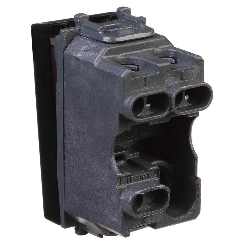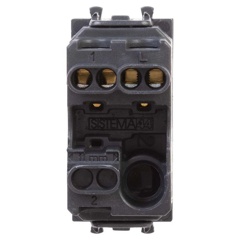 Выключатель одноклавишный однополюсный, модульный. Предназначен для монтажа в системы "In-liner Front" и "In-liner Aero" при помощи рамок-суппортов и каркасов "Avanti" (код 4400912 и т.д.); включения/выключения освещения. Характеристики: диаметр отверстий для ввода кабелей – 3 мм (по 2 отверстия на одну клемму); винтовые зажимы; шаблон для зачистки кабеля – 11 мм; номинальный ток – 16 A; номинальное напряжение – 230 В; возможна фиксация в подрозеточные коробки при помощи каркаса с лапками (код 4400802) и саморезов. 1 модуль. Цвет: "Черный квадрат". Производитель оставляет за собой право вносить во внешний вид изделия изменения, которые не влияют на его функционал, безопасность и надежность.