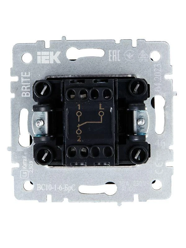 Выключатель проходной 1-кл. СП BRITE ВС10-1-6-БрС 10А механизм сталь IEK BR-V12-0-10-K46