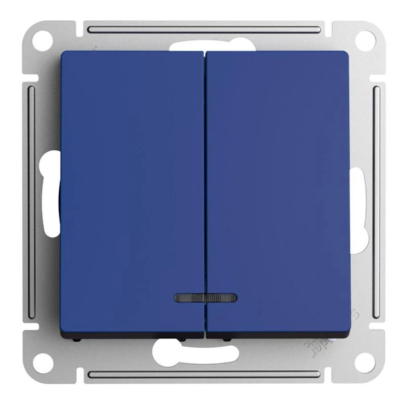 Выключатель 2-кл. AtlasDesign (сх. 5а) 10AX с подсветкой механизм аквамарин SE ATN001153