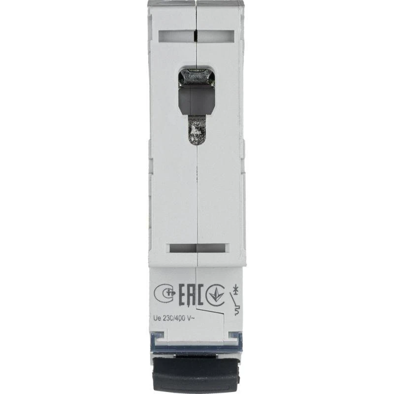 Включение-отключение производится рычажком , провода подсоединяются к винтовым клеммам . Защелка фиксирует корпус выключателя на DIN-рейке и позволяет при необходимости легко его снять (для этого нужно оттянуть защелку, вставив отвертку в петлю защелки). Коммутацию цепи осуществляют подвижный и неподвижный контакты. Подвижный контакт подпружинен, пружина обеспечивает усилие для быстрого расцепления контактов. Механизм расцепления приводится в действие одним из двух расцепителей: тепловым или магнитным.