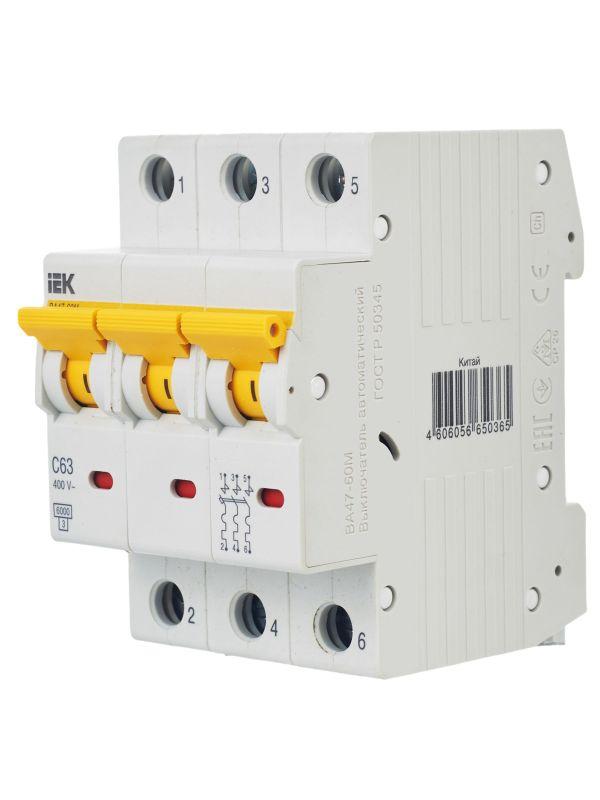 Выключатель автоматический модульный 3п C 63А 6кА ВА47-60M KARAT IEK MVA31-3-063-C