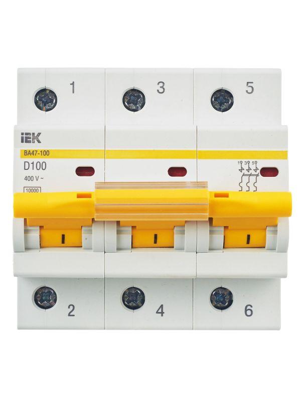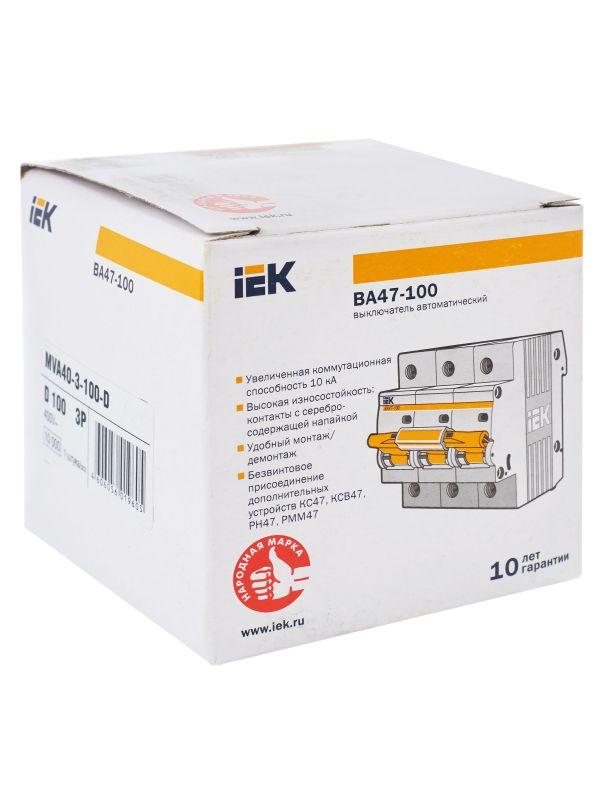 Выключатель автоматический модульный 3п D 100А 10кА ВА47-100 KARAT IEK MVA40-3-100-D