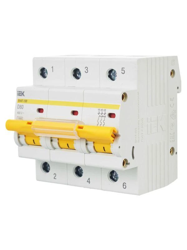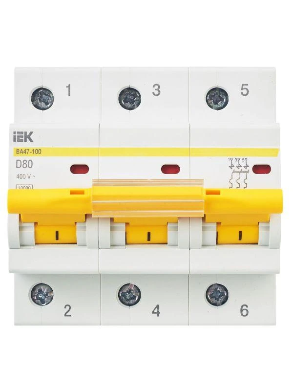 Выключатель автоматический модульный 3п D 80А 10кА ВА47-100 KARAT IEK MVA40-3-080-D