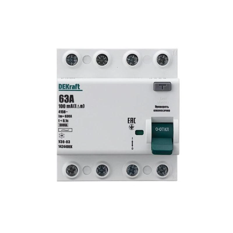 Выключатель дифференциального тока (УЗО) 4п 63А 100мА тип AC 6кА УЗО-03 DEKraft 14244DEK