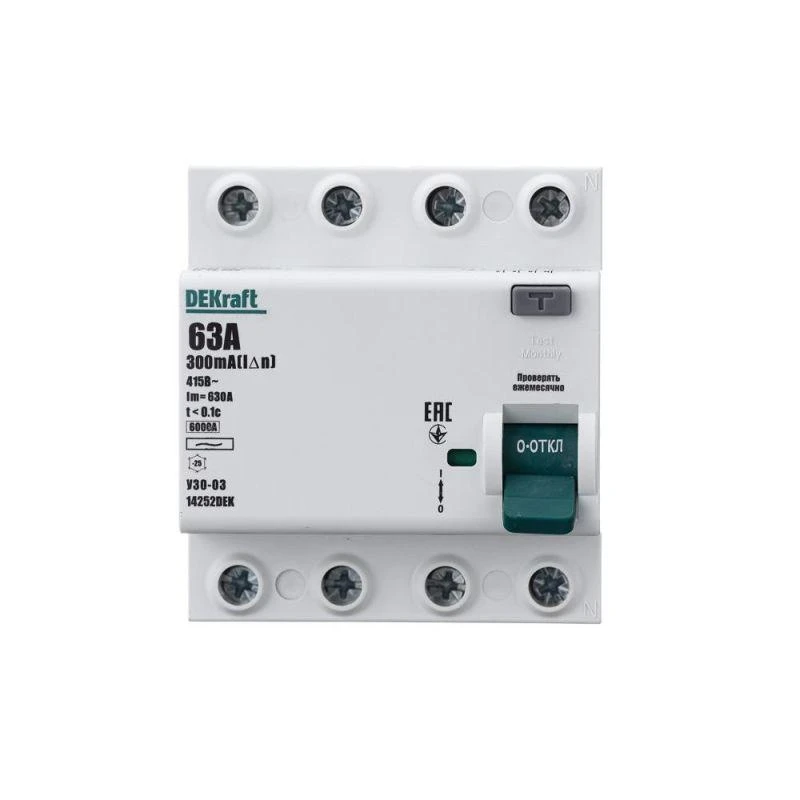 Выключатель дифференциального тока (УЗО) 4п 63А 300мА тип AC 6кА УЗО-03 DEKraft 14252DEK