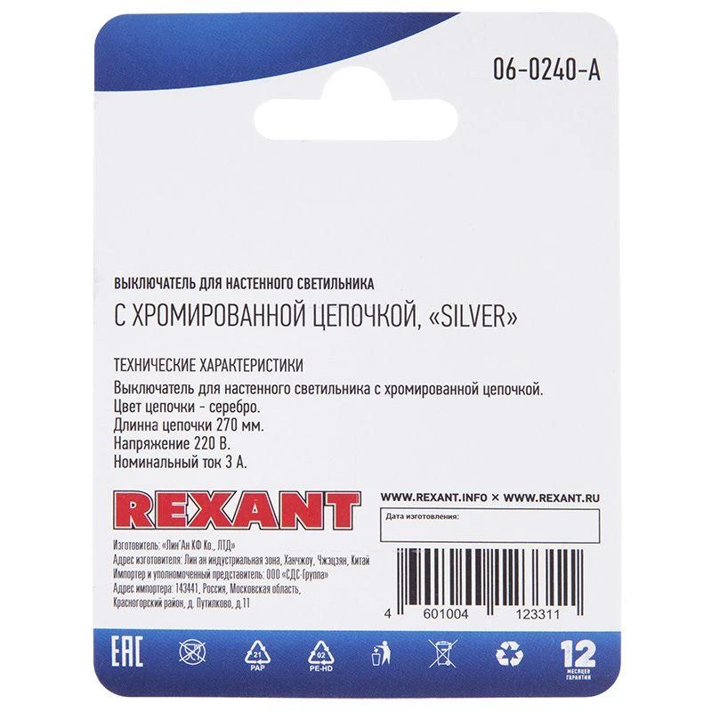 Выключатель для настенного светильника Silver блист. Rexant 06-0240-A