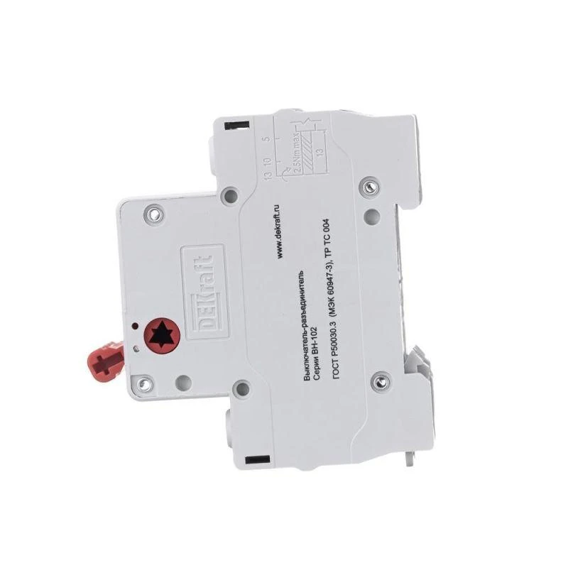 Выключатель-разъединитель серии ВН-102 DEKraft; 2P; номинальный ток 63 А; установка – на DIN-рейку; установочное положение - любое. Выключатели-разъединители применяются для ручного включения/отключения сетей напряжением до 400 В. Специальные мостиковые контакты обеспечивают надежный разрыв цепи; они полностью исключают возможность перекрытия дугой по изоляции. Усиленная рукоятка управления обеспечивает большое количество включений/отключений.